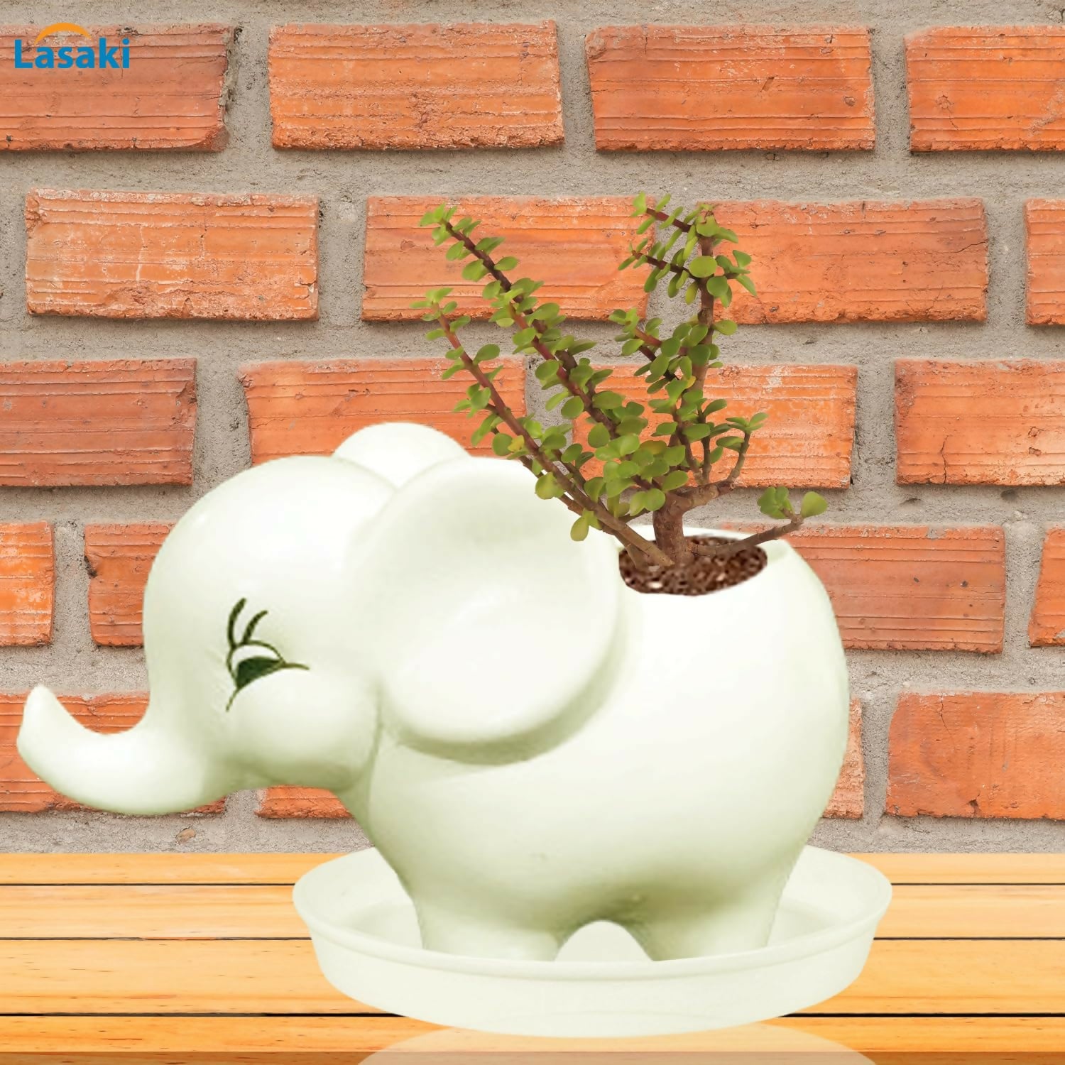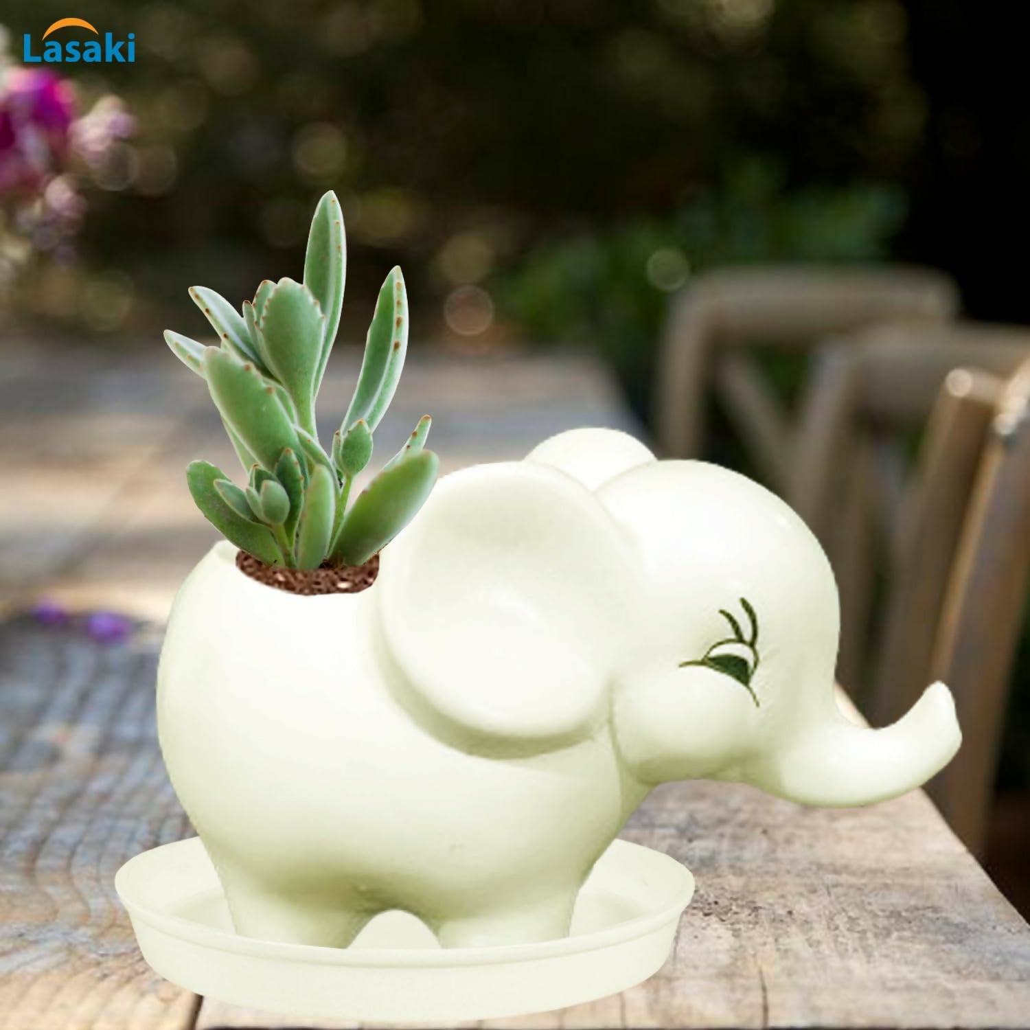 Handmade, high-fired ceramic planter with drainage hole; durable for Indian climate. Ideal for indoor/outdoor plants. Eco-friendly gift promoting Make in India. Plants not included; shown for display only.