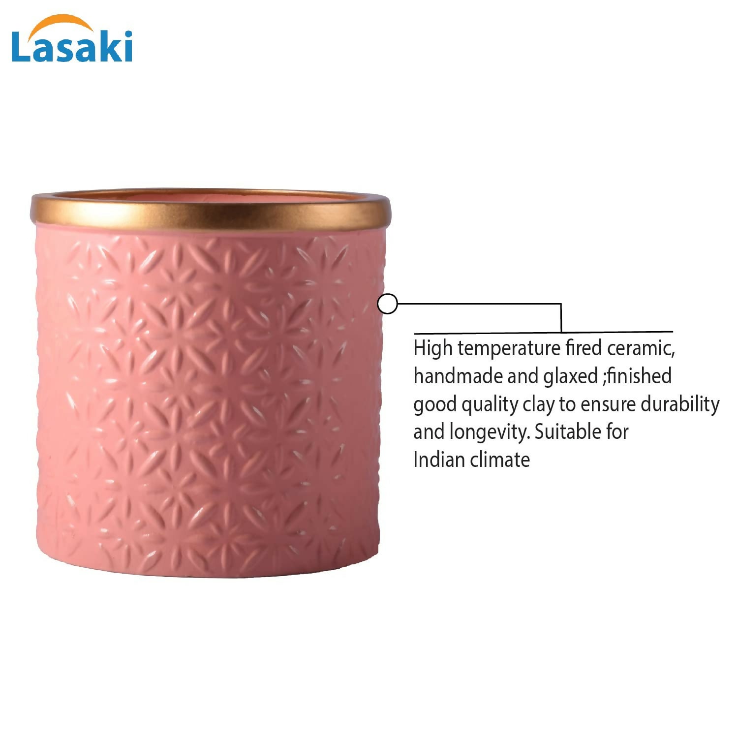 Handmade high-temperature ceramic planter with drainage hole, ideal for indoor/outdoor plants. Durable, eco-friendly, and perfect for gifting. Suitable for Indian climate. Promotes "Make in Bharat" initiative. Plants not included.