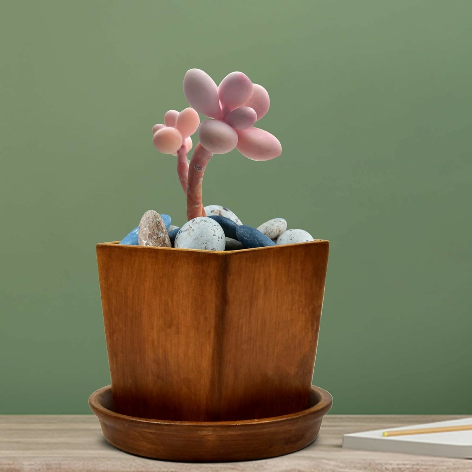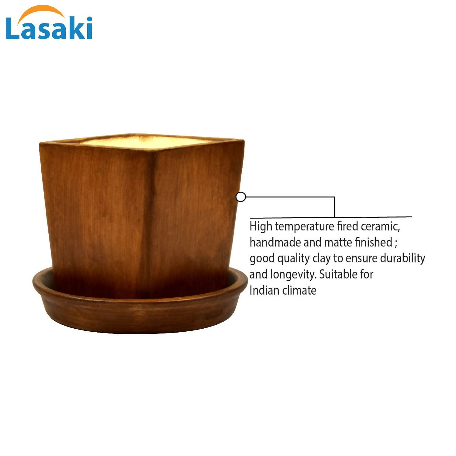 Handmade high-temperature ceramic pot with drainage hole, ideal for indoor/outdoor plants. Durable, eco-friendly, and perfect for gifting. Suitable for Indian climate. Promotes "Make in Bharat" initiative. Plants not included.